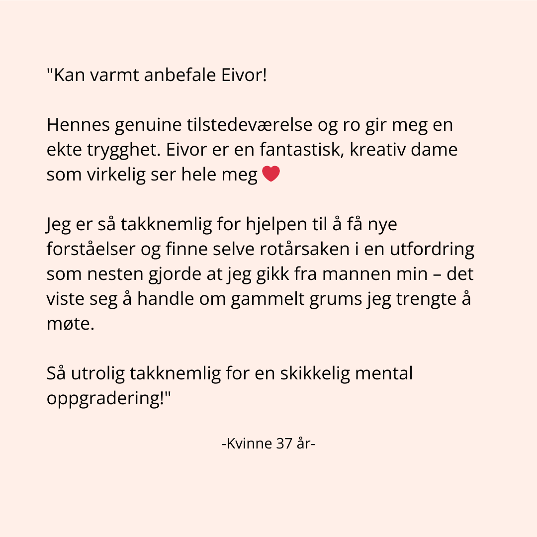 Her arbeider vi i flere lag, slik at både gamle mønstre, sterke følelser og nye valg får tid til å integreres i hverdagen.