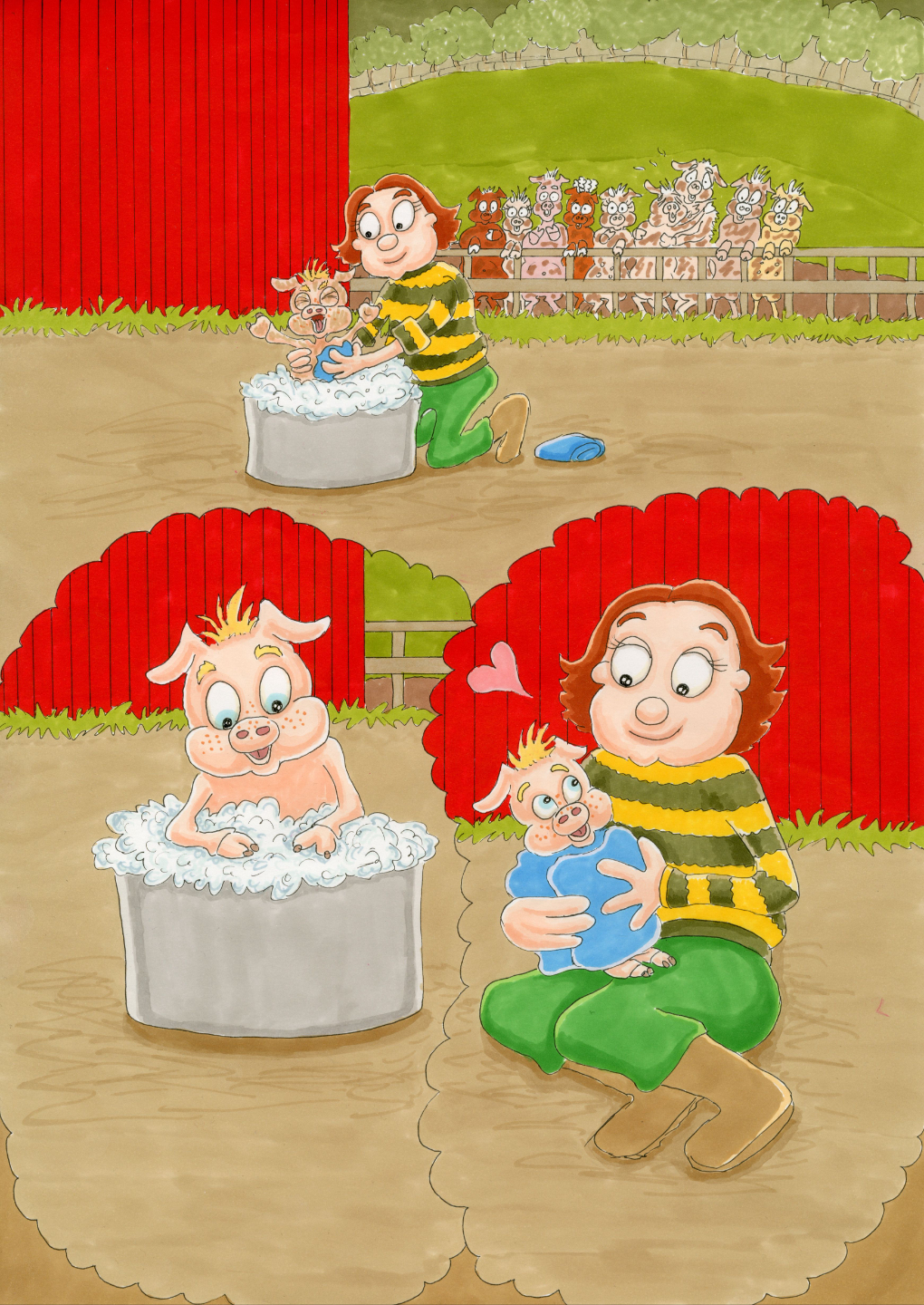 Purki blir badet og sendt på dyreskue sammen med sauen Bærit. Bonden håper på 1. premie, men for en gris er det dypt pinlig å være ren.