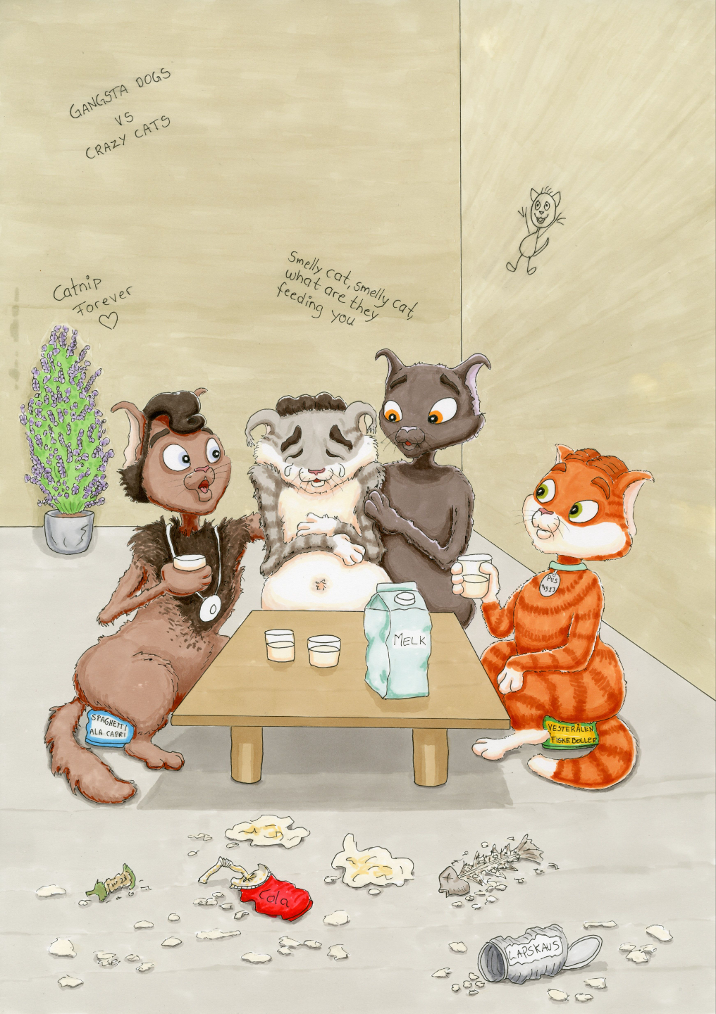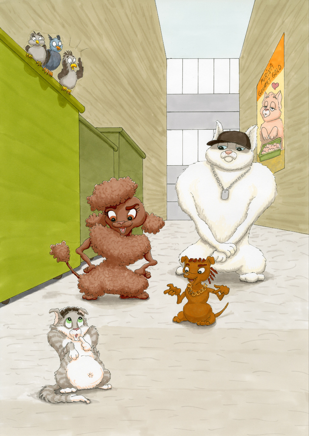 Der møter han tøffe Gansta Dogs, men blir reddet av Katta Chan og gjengen i Crazy Cats.